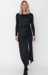 The Jacqueline is the picture of timeless classiness. Featuring a maxi length, fitted silhouette, long sleeves, a keyhole back neckline, and flattering ruching up the side of the garment. Pair with gold jewelry and strappy heels for a show-stopping night out look!