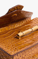 Meet the Jackie, a striking and timeless croc-embossed leather clutch designed to carry you from day to night. Featuring a detachable cross-body strap and a chic bamboo closure, this structured bag blends classic elegance with modern functionality.