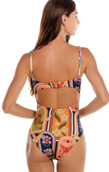 The Petra One Piece is a stunning combination of artistry and craftsmanship. Featuring intricate handmade details and a supportive underwire design, this swimsuit flatters while offering structure. A chic back cut-out and secure hook-and-eye closure add an elevated touch, while the vibrant placement print makes it unique. Adjustable straps ensure a comfortable, personalized fit.