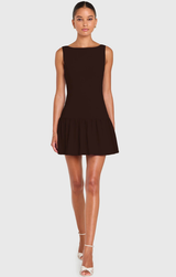 Introducing your new favorite little black dress- the Katina combines modern touches with a timelessly elegant feel. Featuring a boat neckline, on-trend drop waist silhouette, and a gathered skirt, all finished with an invisible back zipper for ease of wear. Pair with tall boots and gold jewelry for an easy model-off-duty ensemble.