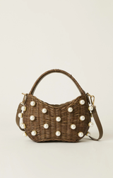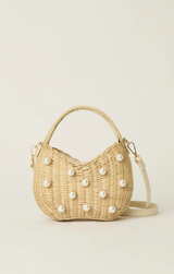 A perfect day to night accessory to elevate any summer look. Adorned with bold pearls over a classic rattan base. Style with a black midi dress and sandals for a styled up yet laid back look.