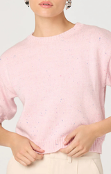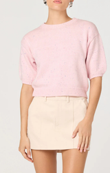 Meet your new go-to layer: a dreamy pink knit with adorable puff sleeves, a laid-back fit, and a cheeky cropped hem. Perfect for those moments when you want cozy-meets-cute.
