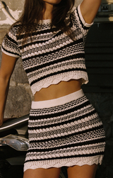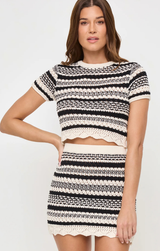 You can never have too much crochet in your closet! The Caicos Top is a beautifully crafted piece featuring a sweater-knit crochet design that adds texture and charm to any look. With its scalloped hem and short sleeves, this crop top transitions effortlessly from beach days to relaxed strolls. Pair it with the matching Caicos skirt or your favorite denim for an easy, elevated vibe.