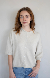 The Felicity Cardigan is an instant classic for the transitional seasons! Featuring a functional button-front closure, a rolled neckline, half-sleeves, and a relaxed fit, all finished in breathable 100% Cotton. Wear it closed as a top paired with jeans or layer it open over spring dresses!