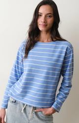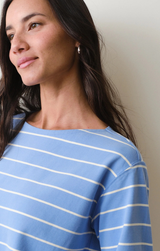 Casual elegance meets everyday comfort in the Luxe Sueded Mariner Tee. This refined striped design features a relaxed fit that skims the body just right, paired with generously wide sleeves for that effortless, laid-back vibe. Crafted from lightweight cotton with a luxuriously soft sueded finish, it's the kind of tee you'll reach for again and again. Timeless stripes, modern ease, what's not to love?