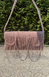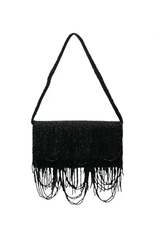 Fringe is in! This eye-catching handbag features a top handle shoulder strap for easy wear, a hand beaded design, and cascading beaded fringe that adds an elegant touch to every look. Pair with your breezy summer dresses and gold jewelry!