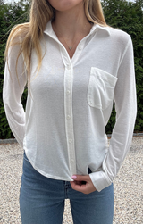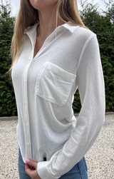 Effortlessly versatile, this long sleeve button-front tee combines casual comfort with polished detail. Crafted from soft, breathable fabric, it features a classic collar and button front for a timeless, put together look. The soft white color makes it easy to layer or wear on its own.