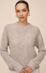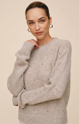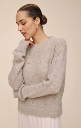 The Beaded Crewneck Sweater brings edge and elegance together. This knit features eye-catching beaded detailing that transforms a classic crewneck into something undeniably chic. Perfect for dressing up your everyday or adding attitude to any outfit.