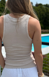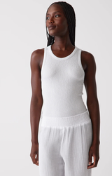 The perfect fitted tank for summer has arrived. We will be wearing this one on repeat. Crafted from a soft crinkle knit fabric made from a textured rayon blend and featuring a classic crew neck, sleeveless style and a bodycon figure flattering fit.