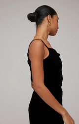 Bring on the velvets! This is the perfect basic tank to layer up during the holiday season. Featuring a cowl neckline, adjustable straps and a relaxed yet flattering fit. Style with joggers, denim or a silk maxi skirt and boots for a chic and styled up vibe.