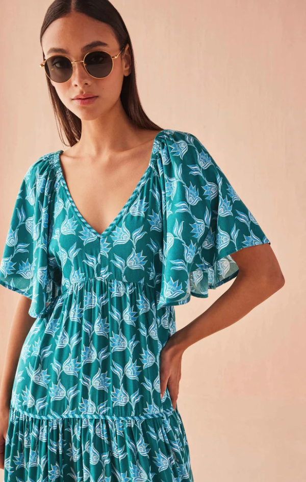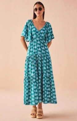 The Holis Maxi combines a soft silhouette with ultimate all day comfort. Featuring a V-neckline at the front and back, flattering tiers, maxi length, side seam pockets for your essentials, and elastic at the back waist to create your perfect fit. Pair with a raffia handbag and gold jewelry for your next summer soirée.