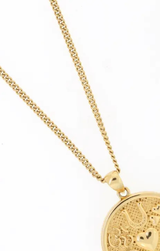 Feeling lucky? Elevate your looks and add a touch of good fortune with this chic medallion necklace, featuring a hypoallergenic design, 18k gold plating over stainless steel, and a water and tarnish resistant finish.