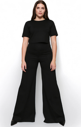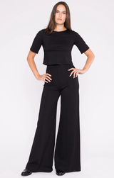 - Ponte Knit Long Wide Leg Pant