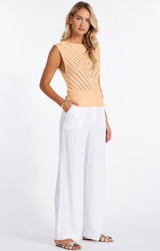The perfect combo of polished and relaxed, these expertly tailed linen pants are a summer staple. Featuring an elongating high rise waist, wide legs, side pockets and pleat detailing. Style with a fitted tank, heels and a cute clutch.