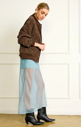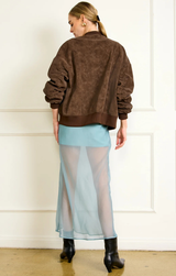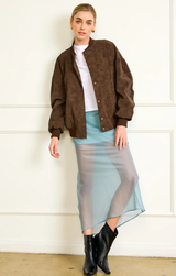 Introducing your new favorite fall outerwear. The Alfie features a comfortable oversized fit, ribbed knit trim at the cuffs and hem, a snap placket, welt side pockets for your essentials, and full lining, all finished in rich chocolate brown PU leather. Layer over anything this fall- tees and jeans, autumn dresses, and mini skirts all pair perfectly!
