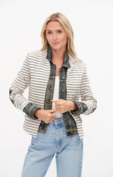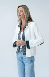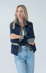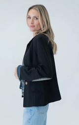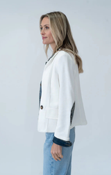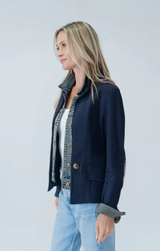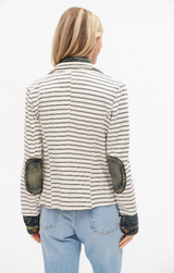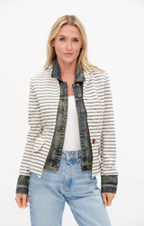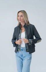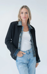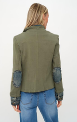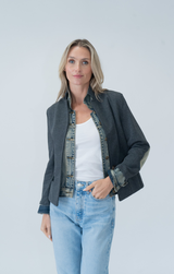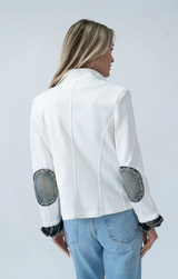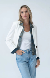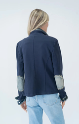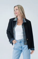 The most loved "made in Italy" blazer is back! This uniquely crafted jacket features a classic style blazer layered over edgy denim. Featuring denim elbow patches, tailored fit and a versatile style. Throw on over a tank with white denim and loafers for a causal yet put together everyday vibe.