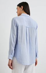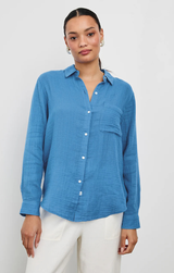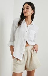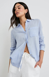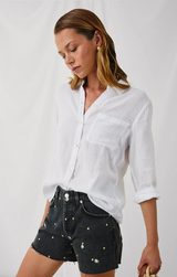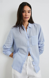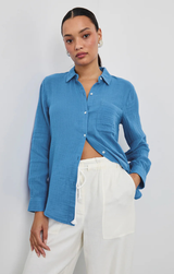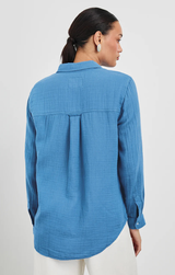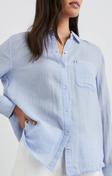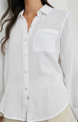 Lightweight, breezy, and breathable, this chic classic is a must-have for everyday elevated comfort. Made from organic cotton gauze, this button-down shirt features a single patch pocket at chest, natural shell buttons and a classic fit. Style over dresses, with denim, or as a coverup.