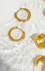 We are so ready for summer and these waterproof hoops are needed in your hoop rotation. Swim, bathe, live in these chic hinged hoops. Style them up or add to a causal denim and white tee look.