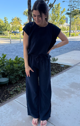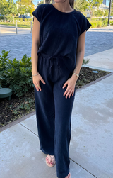 These easy pants deliver lightweight coverage that keeps you cool all season long. Crafted from breathable gauze, they feature a delicate thin waistband with a self-tie drawstring for an adjustable fit, and a wide leg silhouette for ultimate comfort. Pair with the matching Short Sleeve Dolman Top in Galaxy for an effortlessly coordinated look that feels as good as it looks.