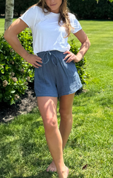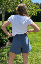 From the beach to brunch, these breezy shorts have you covered. Featuring a slightly wide leg opening and a drawstring elasticated waistband for your perfect fit, all finished in breathable gauze. Pair with the Puff Sleeve Camp Shirt in Aegean for the perfect summer set!