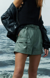 Introducing the Parker- your new go-to transitional shorts. Featuring a vegan leather construction, cargo inspired side pockets, and a self-tie belt with edgy metal hardware. Try pairing the Parker with anything from a crisp white button down to your favorite statement blouse.