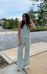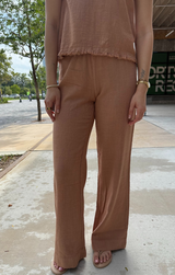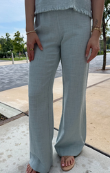 These breathable pants are the perfect addition to your closet for warmer days ahead. Featuring a lightweight feel, elastic waistband for a comfortable fit, wide leg silhouette, and raw edge detailing at the waist. Style with the Shell Tank for a match made in heaven or simply top with a tee!