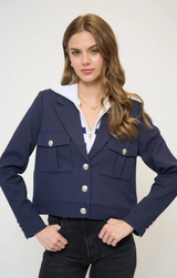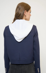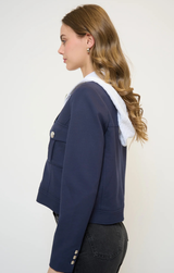 The Wren Crochet Dawson Jacket features a structured silhouette with four functional patch pockets for everyday practicality. The removable sweater layer offers versatile styling. Wear it together for warmth or separately to adapt to changing temperatures. Perfect for layering through seasons.