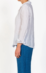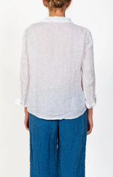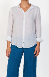 A CP Shades classic for summer. The Romy is a timeless collared button down blouse featuring a loose fit and lightweight natural linen. Wear this as a beach coverup or a buttoned up with light wash jeans and clogs for a simple yet stylish look to live in.