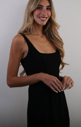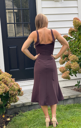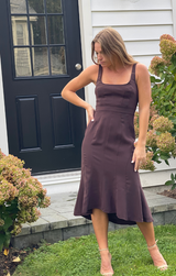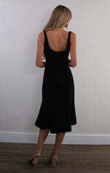 The flattering and dressy midi you need for your stylish cool weather occasions. Featuring a square neck style, fitted bust and waist and a flared out hem. Style up with heels and some gold jewelry for a chic and polished look.