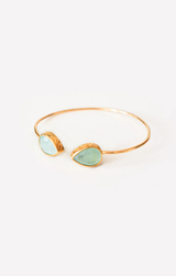 Chic and bold, the Nika Bracelet is an open cuff design featuring teardrop-shaped cat eye stones set on an 18k gold-plated brass band. Handcrafted with an adjustable fit to ensure a comfortable fit while making a striking statement on the wrist.