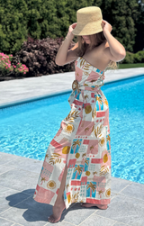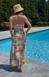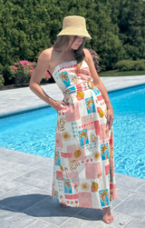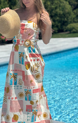 It's giving summertime on the Amalfi Coast... What is better than that? Featuring a flattering strapless design, belted waist, maxi length and a charming Italian style print. Style with heels or sandals and woven bucket hat for a dreamy summer look.