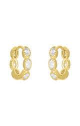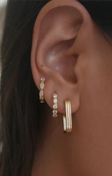 Delicate yet eye catching, the Anna Huggies feature a slim, polished hoop accented with cubic zirconia. The sleek, smooth surface catches the light beautifully, making them perfect for everyday wear or stacking with other earrings.