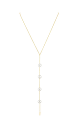A timeless and elegant style that gives off a sexy and edgy vibe. A classy necklace to wear for a date night, holiday party, work and beyond. Featuring a four pearl drop and 18k gold plated over stainless steel.