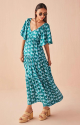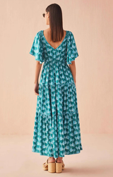 The Holis Maxi combines a soft silhouette with ultimate all day comfort. Featuring a V-neckline at the front and back, flattering tiers, maxi length, side seam pockets for your essentials, and elastic at the back waist to create your perfect fit. Pair with a raffia handbag and gold jewelry for your next summer soirée.