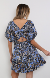 Short and sweet! This breezy mini dress is a perfect party piece for the warm weather seasons. Featuring a wide v neck, puff sleeves, swing mini skirt and bold print. Style with strappy heels and a cute clutch.