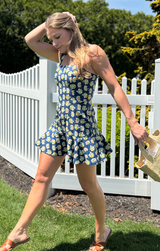 The print inspired by Bridgerton, this cute mini features a classic square neckline, thick straps, ruffle hem and flattering fitted bodice. Style with tie up heels and gold hoops for a styled summertime vibe.