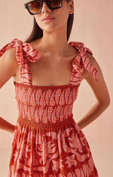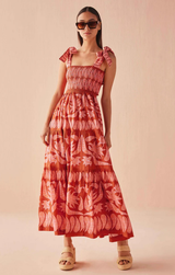 The Lana Maxi is vacation-ready and always eye-catching. Featuring bow tied straps for a feminine touch, a smocked bodice for a super comfortable fit, a lightweight cotton construction, and a cross back design that creates a chic cutout that's still bra-friendly. Style with strappy sandals and the biggest sunhat you own for charming resort wear.