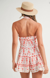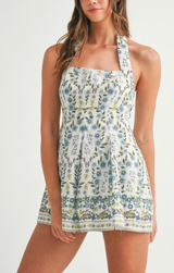 This flirty romper makes us want to frolic in a flower field! Featuring a classic halter neckline, mini length, romper-style shorts for extra coverage, careful pleating at the waistline, and a hidden back zip closure, all finished in a spring-ready floral print. Dress it down with a denim jacket and sneakers, or pair with strappy heels and a statement purse for a more polished look.