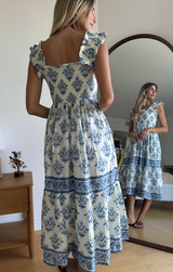 A best seller from our very own Mint collection! With its dainty flower bud pattern and delicately ruffled shoulder straps, the Olivia Dress is our everyday boho pick for the summer. Featuring a romantically tiered skirt construction, midi length, and a smocked elastic bodice to flatter, this dress is as adorable as it is comfortable.