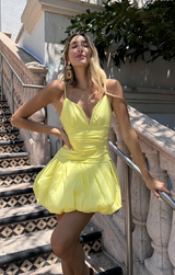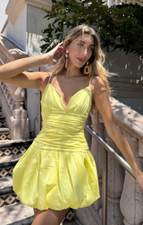 Its giving "Summer In Italy" vibes and we are here or it! Featuring a bubble mini hem, plunging v neckline and a bright lemon yellow color. Style with strappy heels and statement earrings for a day to night vibe.