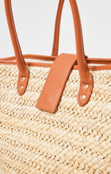 Throw anything into the Alfie Bag! The roomy tote is crafted from natural cornhusk with sleek faux leather straps and a magnetic flap closure, this multipurpose tote is your new go-to for beach days, picnics, and anything alike. Spacious, lightweight, and stylish, perfect carryall for every day.