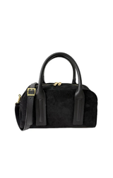 Time to refresh your fall handbags. This classic duffle made from soft suede and premium leather. Featuring a detachable zippered pouch pocket inside for added convenience and an adjustable and detachable leather strap with gold hardware.