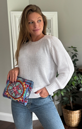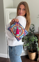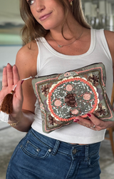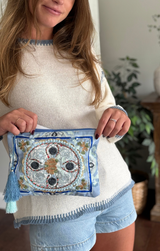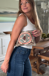 Introducing the beloved companion to the best-selling boho bag! Add a little organization to your beach tote with this chic pouch that features a zip top closure to keep your belongings secure and unique bohemian inspired appliques. Style with the Boho Bag and a swimsuit for the ultimate warm weather look.