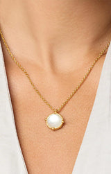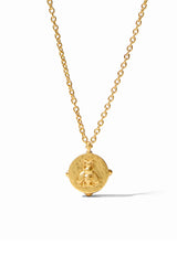 Embrace the bee! A faceted gemstone enhanced with four golden beads, dangling from a delicate cable chain, and a sweet honeybee icon on the back.