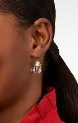 A statement piece that elevates any look, dressy or casual. Featuring beaded golden caps decorated with diamond-shaped brilliant cut CZ, suspended from an elegant French wire.