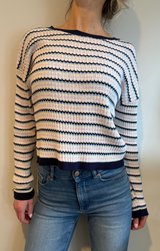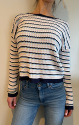 A fun spring knit to ease your way into the new season. Featuring a sweet multi stripe, long sleeves, relaxed fit and drop shoulders. Style with your everyday denim and sneakers.
