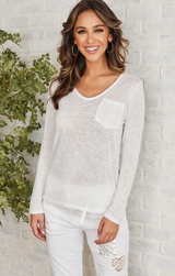 An elevated basic to carry you seamlessly into the transitional seasons. Featuring a rolled neckline, long sleeves, a slightly sheer look that lends a lightweight feel, and a front chest pocket. Style with patterned summer skirts, denim, blazers, and trousers alike- anything goes!