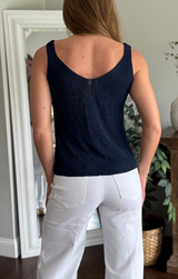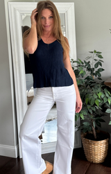 A lightweight Italian viscose on a classic tank style. The perfect combo for your summer days. Featuring detailed stitching, wide v neck and an ultra relaxed fit. Style with white denim and heels for a going out look.