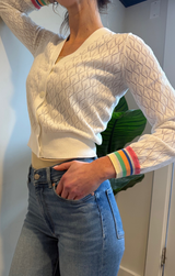 - Margot Stripe Cuff Stitch V Cardigan