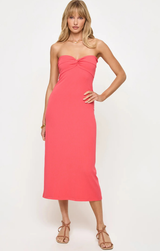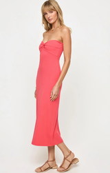 Introducing your newest summer show-stopper. The Lisette Dress features LSpace's iconic ribbed material, a strapless neckline, midi length, a cute twist front detail, and non-slip rubber at the bust to keep things in place. Style with a sunhat and sandals for a resort-ready look, or dress it up with heels and gold jewelry.
